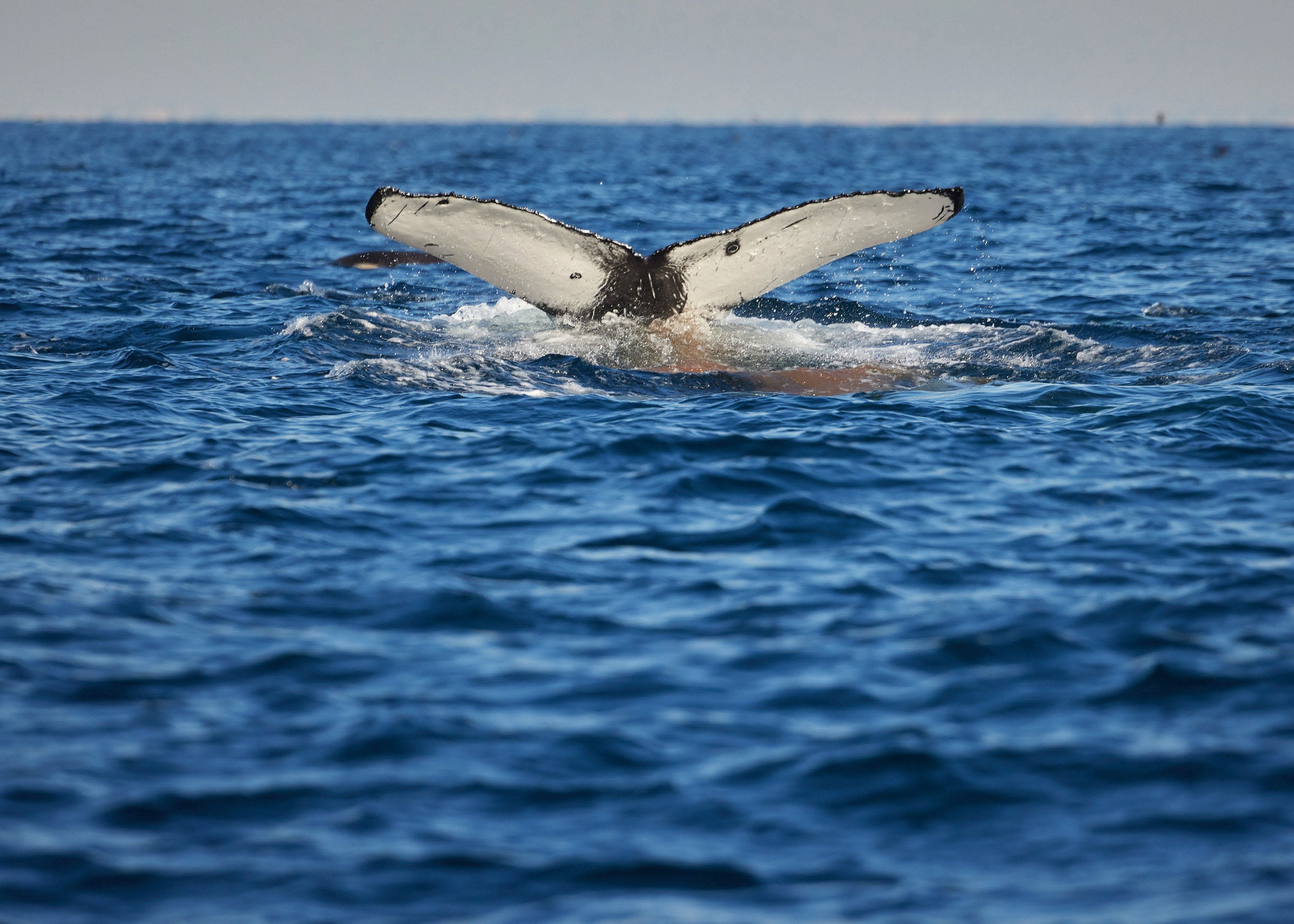 A humpback whale defecates as it dives off the coast of California.