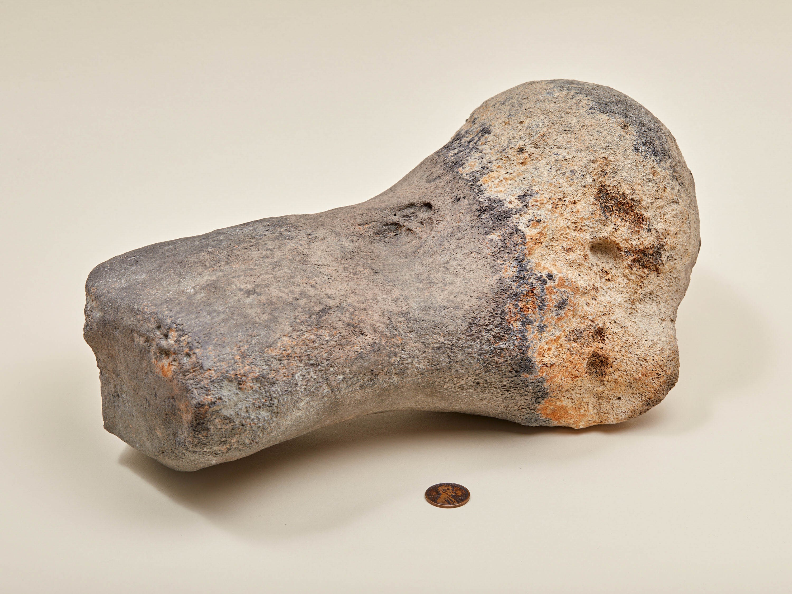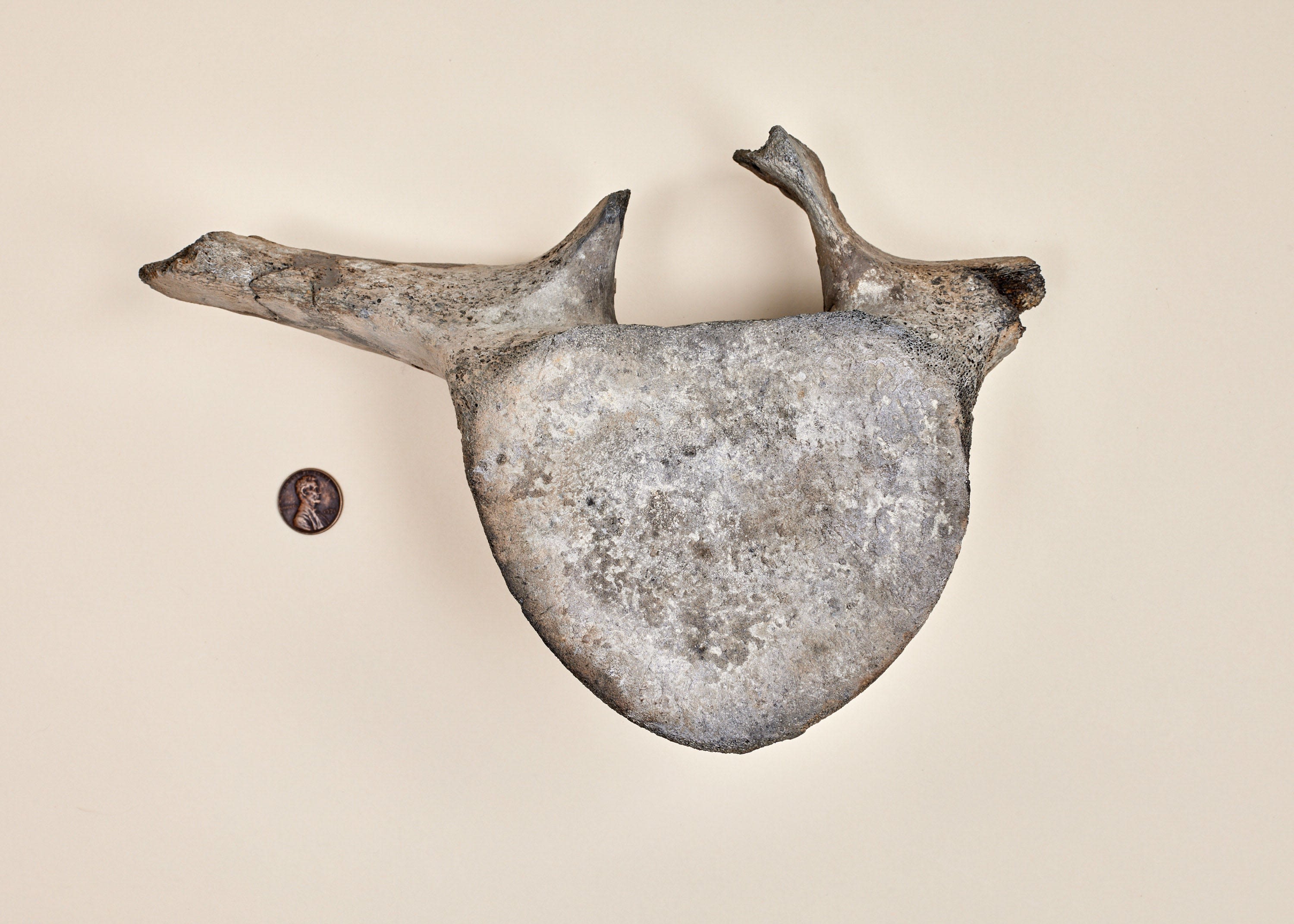 A vertebrae from a cetothere, an extinct family of Pliocene whale related to modern baleen whales, found in Edgecombe County, North Carolina.